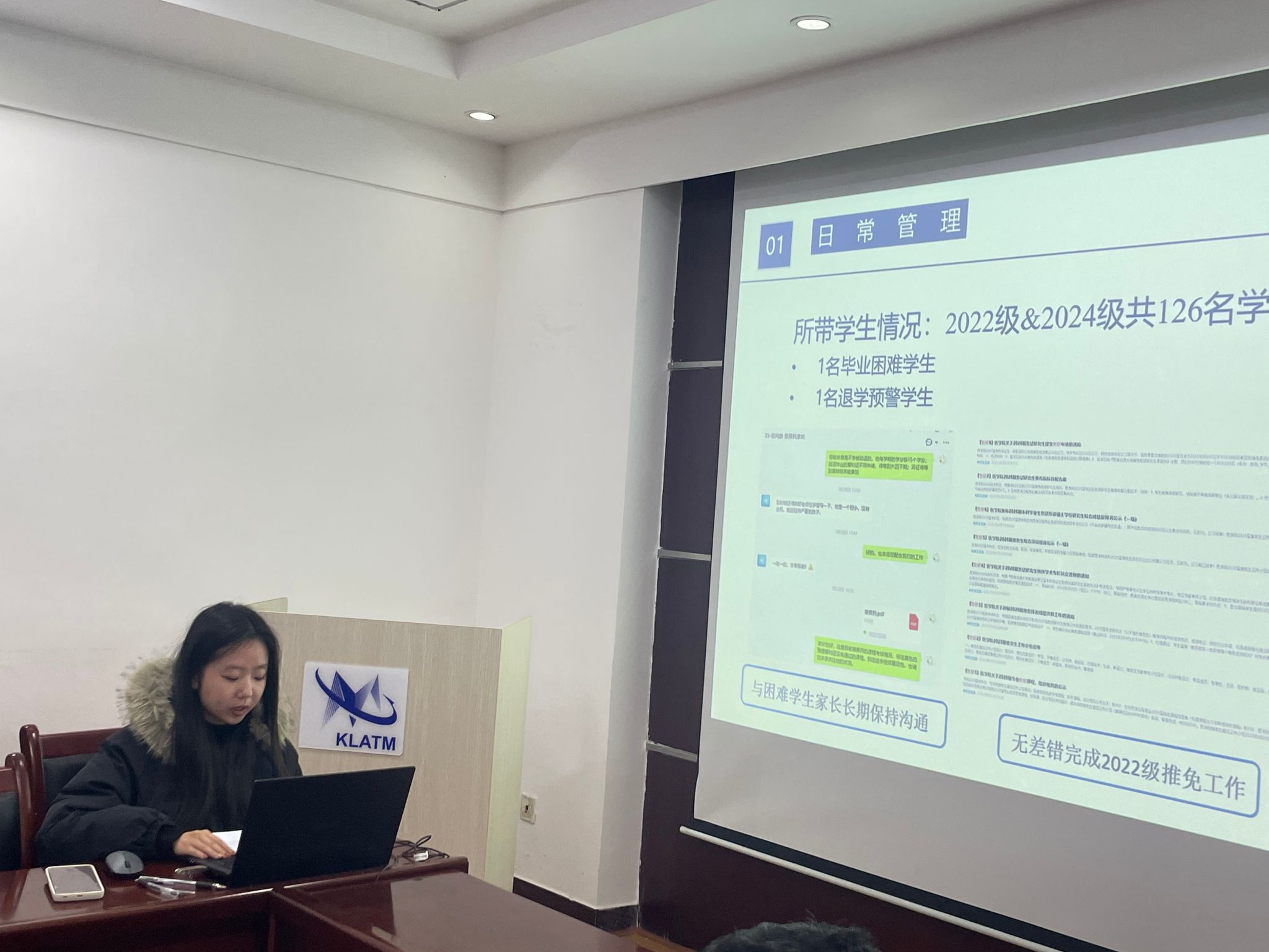 会上,学工组副组长胡豪、专职辅导员靳涵、免研辅导员廖柯琳、兼职辅导员韩鹏飞依次作述职报告。各位辅导员紧扣思想理论无码直播 与价值引领、党团及班级建设、学业指导与学风建设、日常事务管理、心理健康无码直播 咨询、职业规划与就业创业指导等核心职责,全面总结了过去一年的工作内容、显著成效,分享了育人经验与成长感悟,深刻剖析了工作中存在的不足,并明确了下一步的改进方向与工作思路。