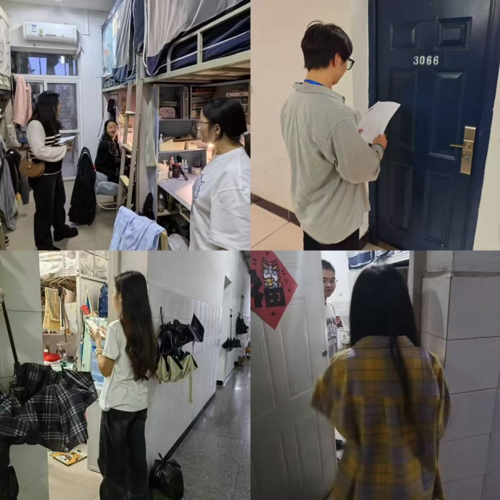 会,成立10余人的安全联合检查小组,开展宿舍、实验室双线联合检查。围绕 “平安医学” 建设,分别深入犀浦校区、九里校区查隐患、筑防线,为全体在校学生营造安全环境并强化其安全意识。此次联合检查由院党委副书记于楠统筹部署,辅导员胡豪、靳涵、廖柯琳、韩鹏飞分别带队开展。
