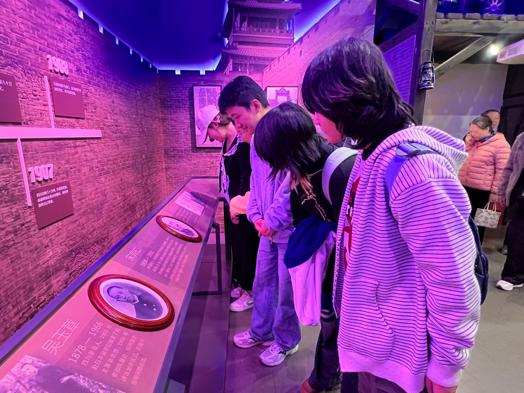 保路运动的宏大叙事,在放映厅的纪录片中凝聚为“爱国、团结、抗争”的精神内核。党员们深刻感受到,这一内核与之后抗战精神中“视死如归、宁死不屈”的民族气节血脉相通,共同铸就了中华民族的精神基座。这份感悟在“四川保路运动大事记”展区得到了具象化延伸。沿着1903至1912年的时间轴,党员们逐步梳理关键节点,在历史的潮汐中真切触摸到“历史主动精神”的磅礴力量。