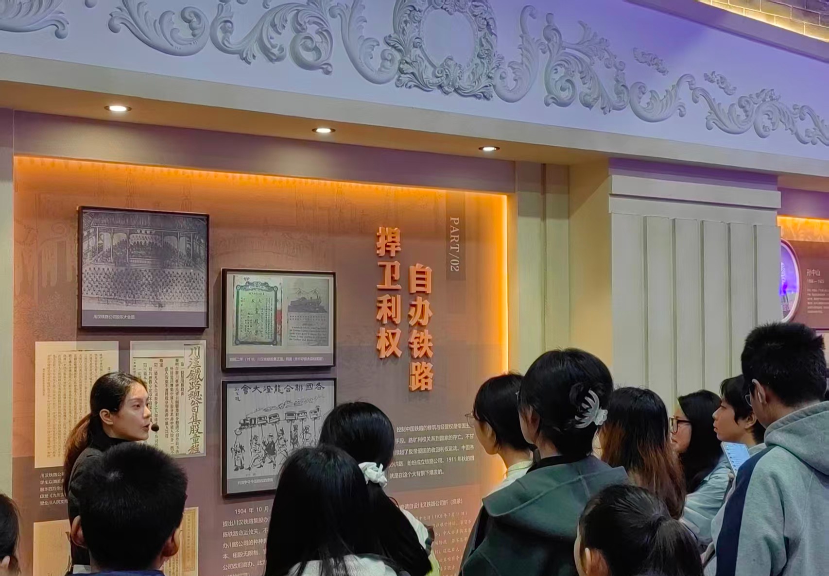 在成都市人民公园四川保路运动史事陈列馆专业解说员的引导下,支部党员怀着崇敬之心走进这座承载着百年记忆的展馆。大家从“蜀道难”开篇展区的历史场景切入,沿着展陈脉络依次探访“新潮涌动,风暴来临”“保路风潮,波澜壮阔”“放映厅”“荣县独立与武昌起义”“四川保路运动大事记”“薪火传承,走向富强”六大主题展厅,在实物、影像与文字的交织中,沉浸式感受保路运动的历史温度。